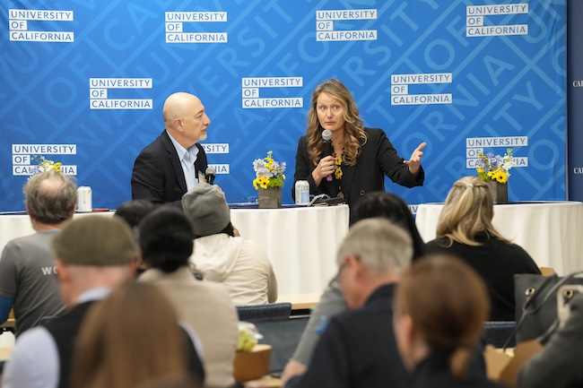 Asm. Buffy Wicks in conversation with Capitol Weekly Editor Rich Ehisen (left) at A Conference on Housing, February 24, 2026. Photo by Joha Harrison, Capitol Weekly